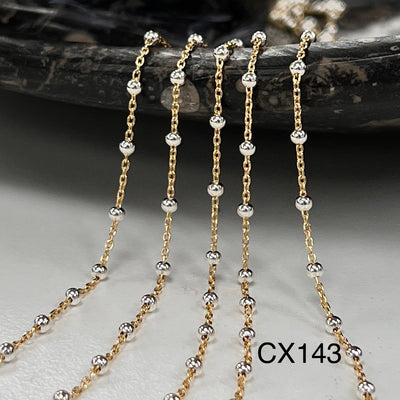 CX144: Mixed Metal 2 Tone Medium Triple Bead Satellite Chain by the foot (26ga Jump Ring Only)
